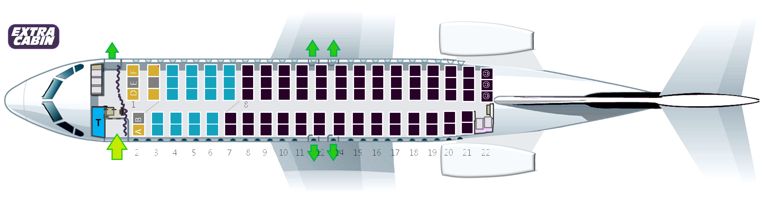 Ce plan de cabine est communiqué à titre informatif. La configuration réelle de chaque cabine peut en différer et peut également être modifiée sans préavis.